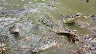 Cara makan yang ganas buaya Sumatra di Penangkaran Taman Buaya Indonesia Jaya, Suka Ragam, Serang Bekasi, Jawa Barat Indonesia. Buaya adalah ...
